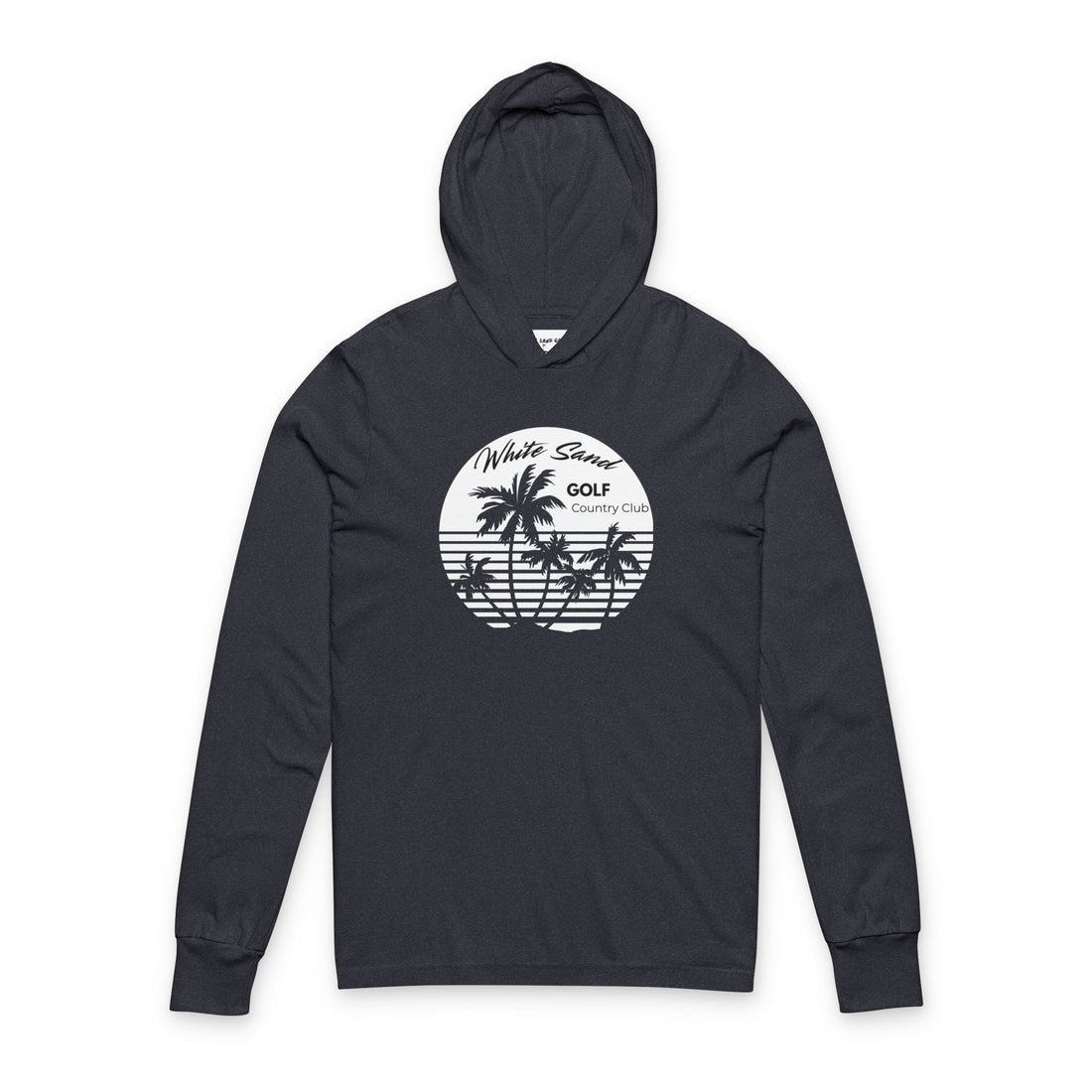 Tropical Golf Hoodie Long Sleeve Tee — "White Sand Golf Country Club" Palm Sunset